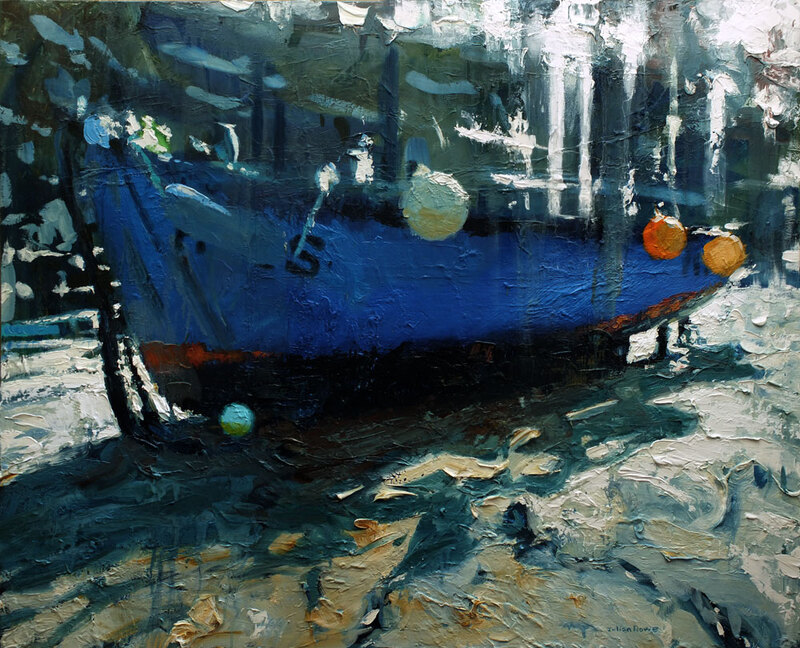 Two blue boats